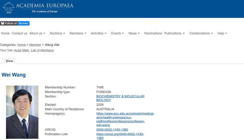近日,欧洲科学院(Academia Europaea)正式公布了2026年新当选院士名单。汕头大学医学院特聘教授王嵬教授,凭借在糖生物学与生物分析技术领域的卓越学术成就与深远的国际影响力,荣膺欧洲科...