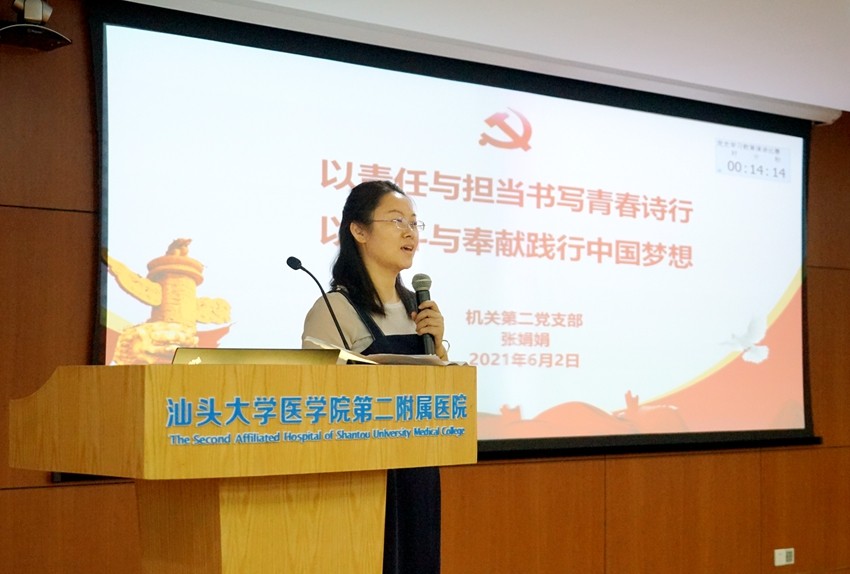 “作为一名共产党员,我们要坚守自己的初心和使命,我们要把人民群众生命安全和身体健康放在首位……”6月2日下午,汕头大学医学院第二附属医院会议中心传出了阵阵铿锵有力、饱含激情的演讲声。为庆祝中国共产党百年华诞,增强医院干部职工、医务人员的爱党爱国情怀,由医院党委举办的党史学习教育演讲比赛在这里如火如荼进行着。