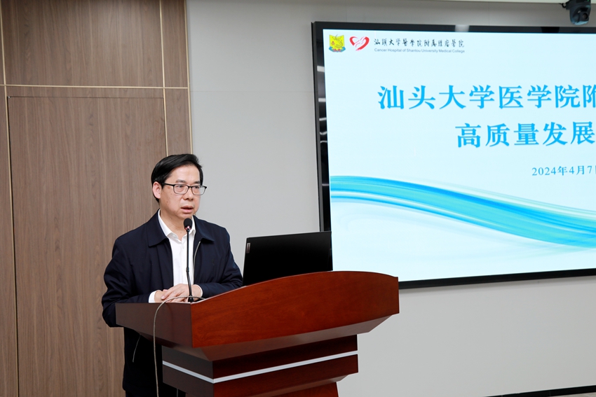 岭南春来早,奋进正当时。为更好地谋划医院发展,共同推进医院实现新跨越、新发展,4月7日下午,汕头大学医学院附属肿瘤医院在大学路院区召开医院高质量发展研讨会,为医院高质量发展描绘奋进蓝图。医院院领导、中层干部、近三年进修回院医生参加会议,会议由医院党委副书记、院长王新家主持。