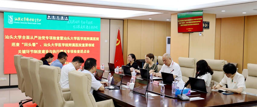 6月12日上午,汕头大学全面从严治党专项检查暨汕头大学医学院附属医院巡查“回头看”、汕头大学医学院附属医院重要领域关键环节制度建设与执行情况专项检查进点会在汕头大学精神卫生中心召开。汕头大学医学院检查组组长、纪委书记林枫,纪委副书记林玲及检查组成员,精卫中心党政领导班子成员及职能科室负责人参加会议。会议由党总支委员、中心副主任卓永宁主持。